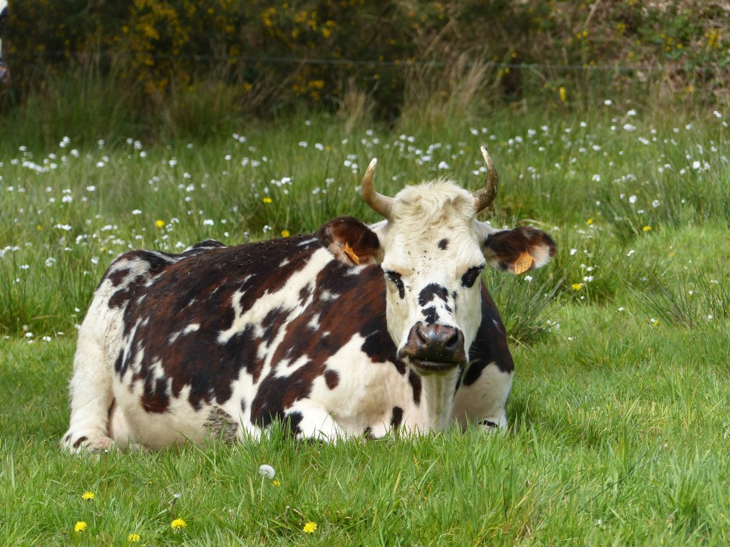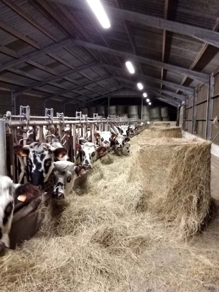 Les animaux sont nourris avec l’alimentation produit sur la ferme. Ils pâturent neuf mois dans l’année. Du foin et de l’herbe conservé leur sont mis à disposition en bâtiment pour passer l’hiver.